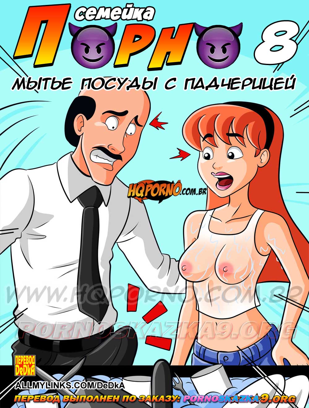 Порно комикс «Семейка порно 8: Мытье посуды с падчерицей.»